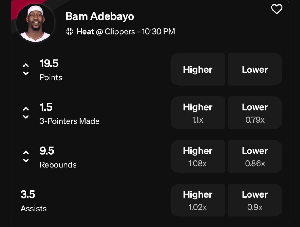 For the Heat, Bam Adebayo may have to do more heavy lifting. He’s the trending player for a Miami team that’s gone 3-3 so far this season.