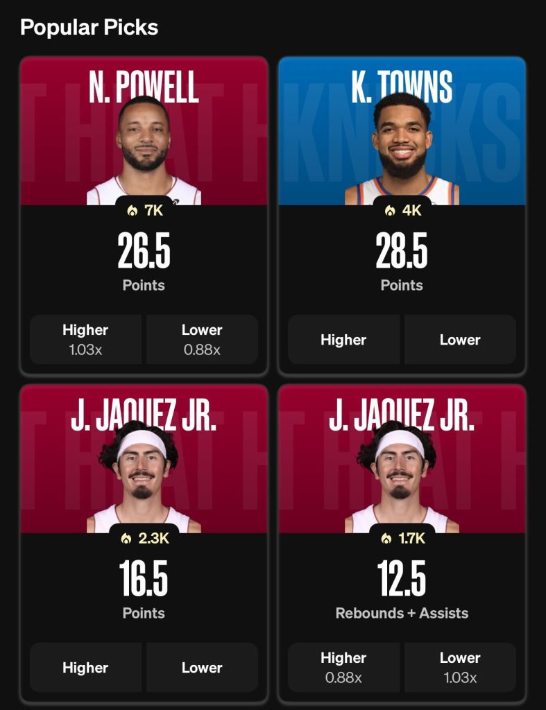This should be a smash spot for Karl-Anthony Towns, and he’s understandably seeing a lot of activity across DFS and betting apps. Likewise for Miami’s Norman Powell, who should see huge usage once more tonight.