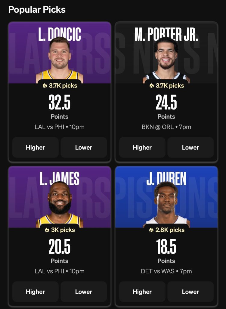 A few popular NBA player picks on Underdog:
