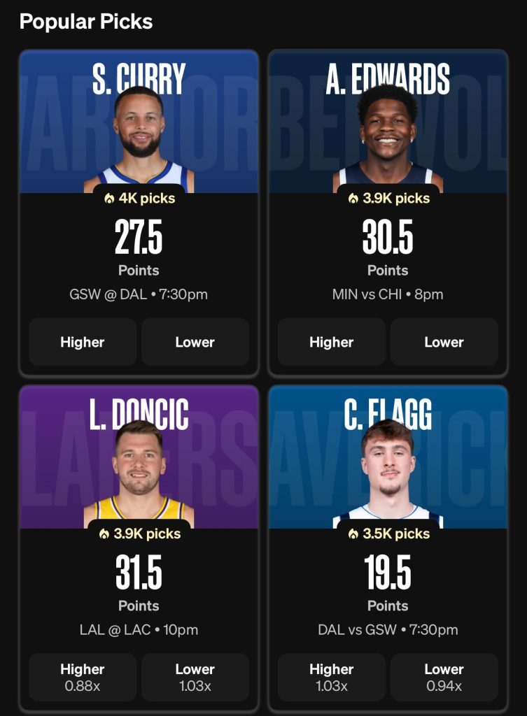 Here are some popular NBA player props on Underdog: