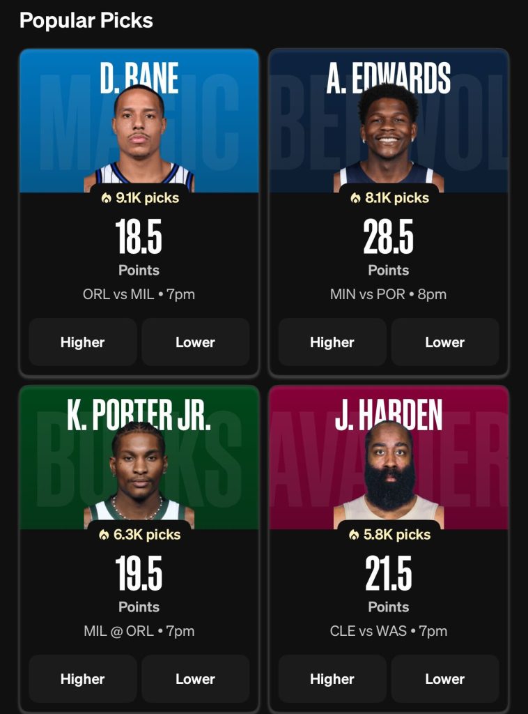 A few popular NBA player picks on Underdog: