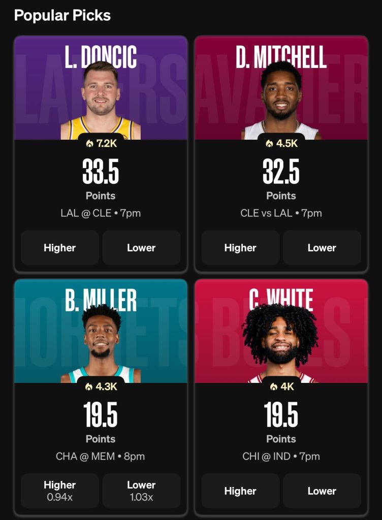 Here are some popular NBA player props on Underdog: