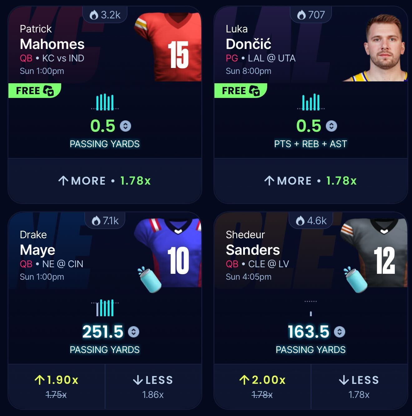 Must be 18+ (19+ in AL, NE; 19+ in CO for some games; 21+ in AZ, MA, and VA) and present in a state where Underdog Fantasy operates. Terms apply. See assets.underdogfantasy.com/web/PlayandGetTerms_DFS_.html for details. Offer not valid in MD, MI, OH, and PA. Concerned with your play? Call 1-800-GAMBLER or visit www.ncpgambling.org; NY: Call the 24/7 HOPEline at 1-877-8-HOPENY or Text HOPENY (467369) See more…