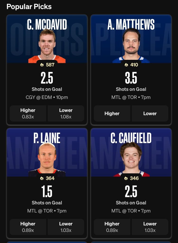A look at some of the most popular player projections on Underdog NHL at time of writing:
