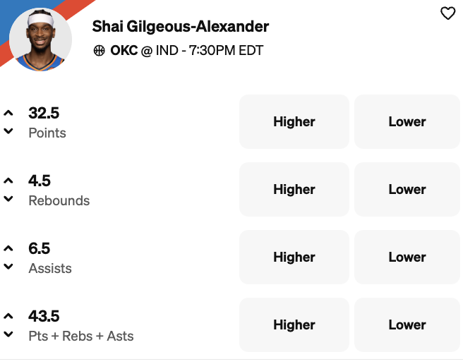 SGA was bailed out on this player prop during the opener thanks to the pair of extra sessions. Indy plays much faster than Houston, but the risk of a possible blowout is also in play, which works well for less than 32.5