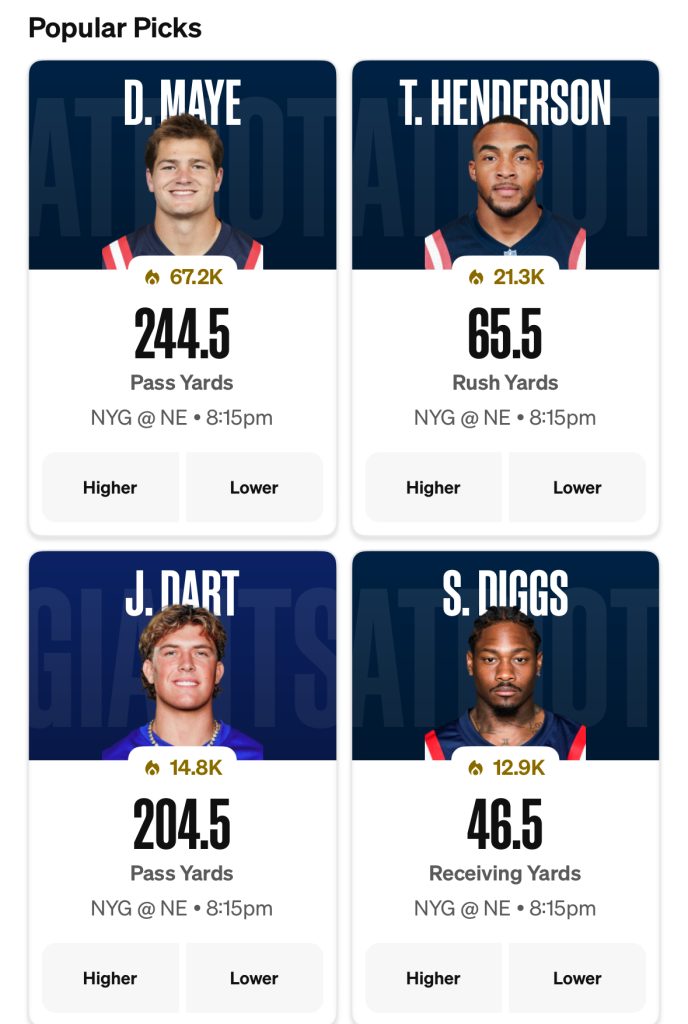 The key here is that the New England Patriots will be without the left side of their line. The Giants can get pressure on opposing quarterbacks, and that could force Maye into more scrambles. He quietly comes with elite upside in this matchup.
