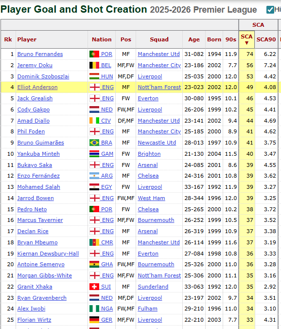 Updated EPL leaders in Shot-Creating Actions Per 90 Minutes (via Football Reference):