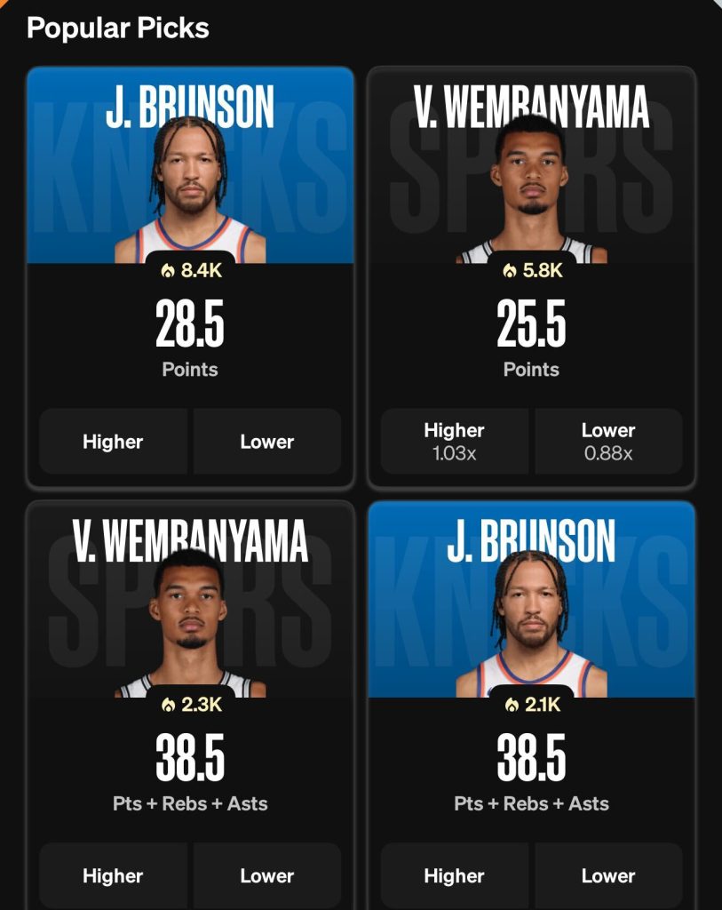 Jalen Brunson continues to play at an elite level and has a high points projection of 28.5 over on DFS pick’em sites like UD. His PRA number is at 38.5, the same as Wemby’s.