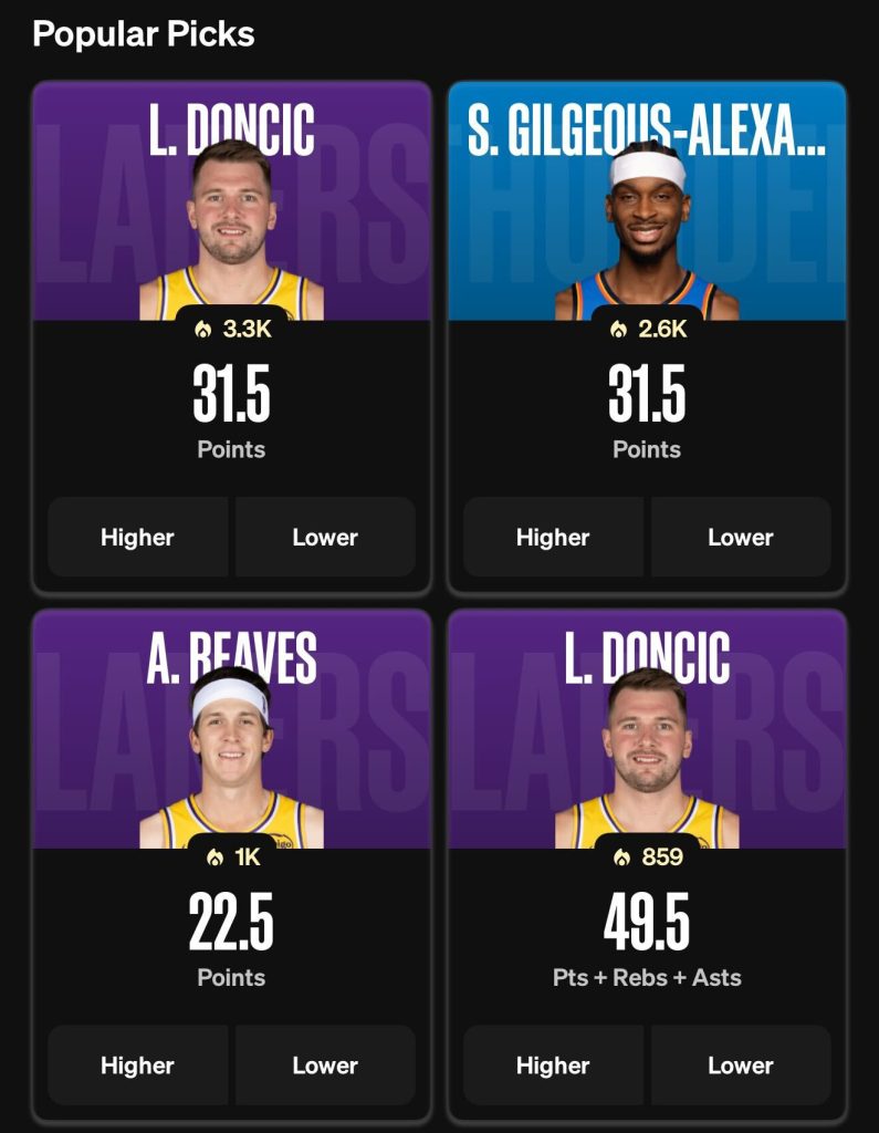 To no surprise, Doncic and Shai Gilgeous-Alexander are the two most popular players for now, while Austin Reaves is also getting a lot of attention. All three have enjoyed incredible starts to their 2025/26 seasons.